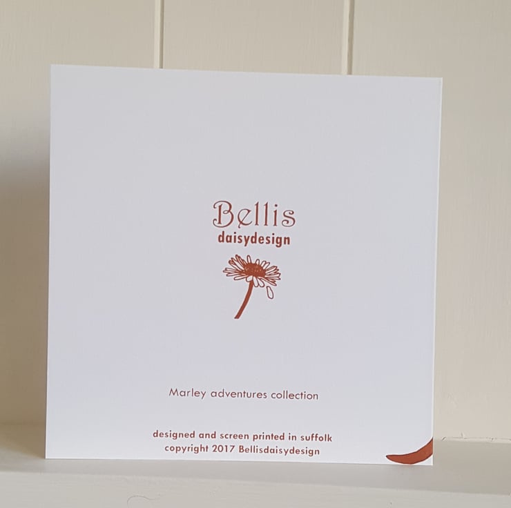 The Chocolate Labrador in the picture is hand drawn from my own Labrador Marley when he was 6 months old and full of excitement experiencing his first Christmas.