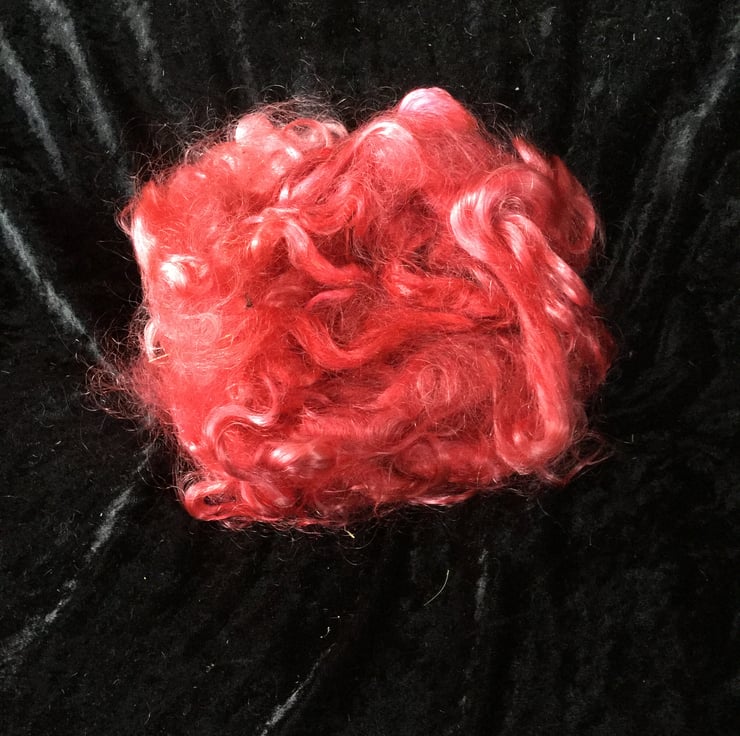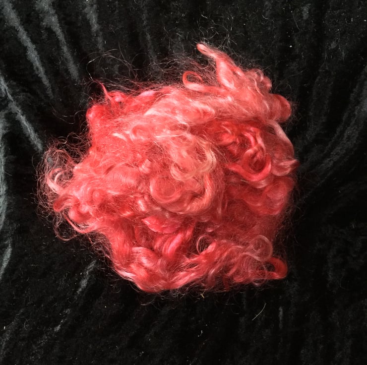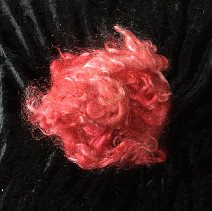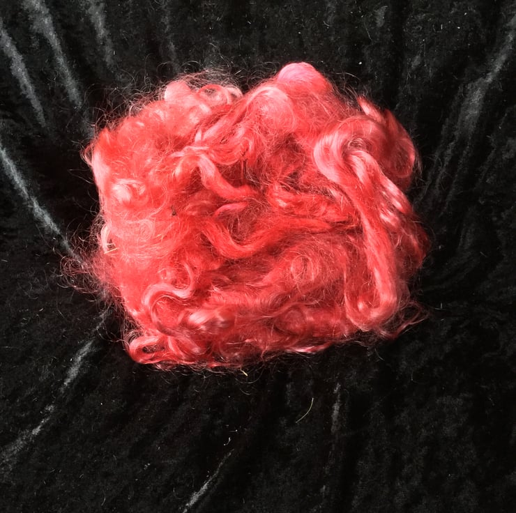 Mobair Kid Mohair locks hand dyed by Victoria in random tonal coral raspberry pinks.