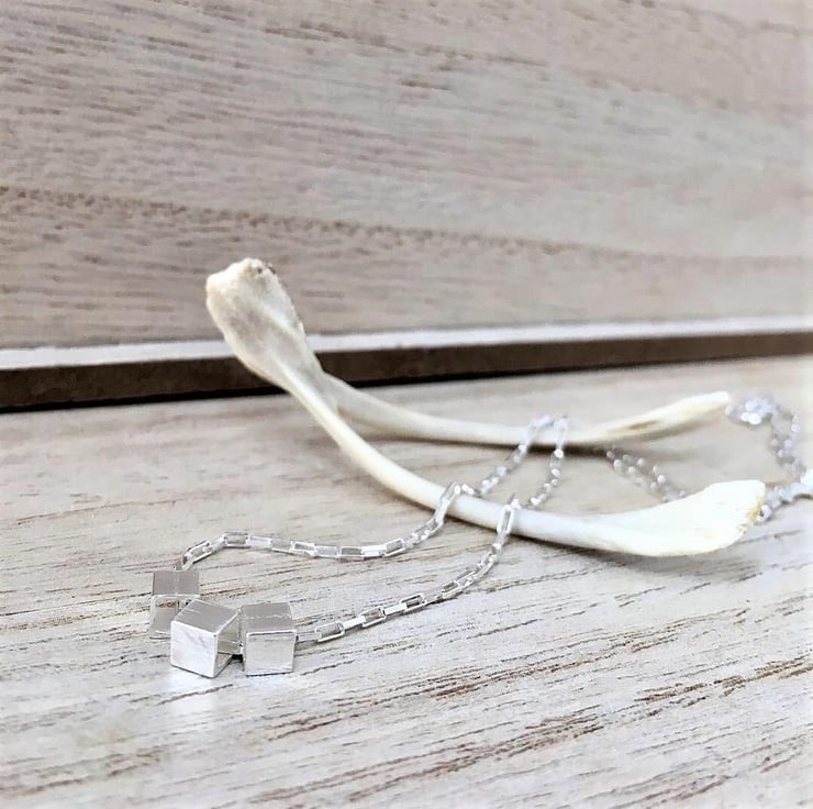 THREE M I N I C U B E S - simple and urban chic minimal style sterling silver necklace