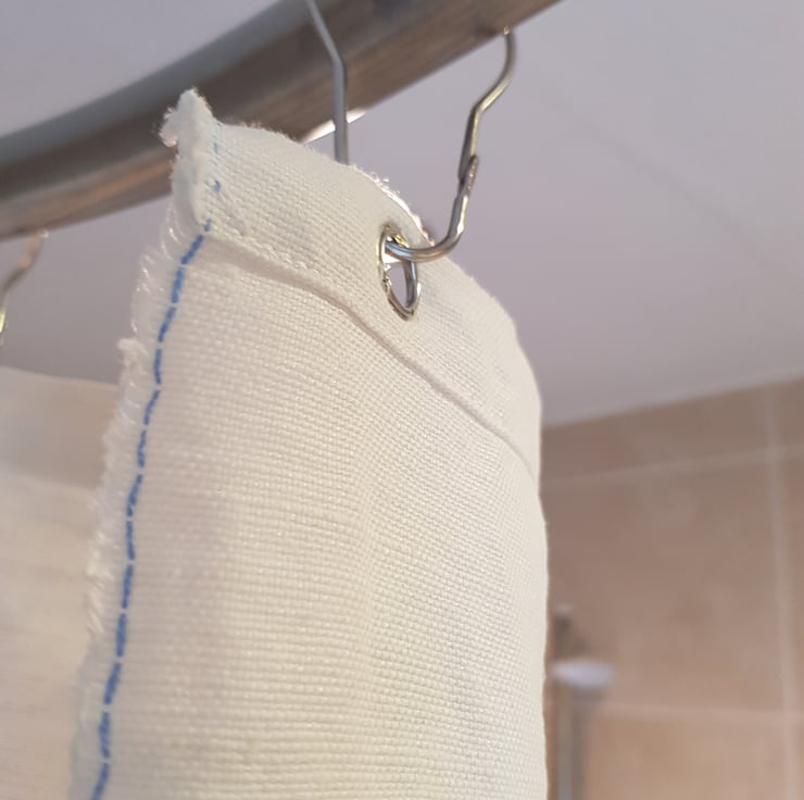 It all started with my old, worn out shower curtain ... but trying to find one that was plastic-free was a struggle ... finally I managed to source some, but the cost was so extravagant (£90 upwards was beyond my purse strings!!). So I decided to face the challenge head-on ... and, to cut a long story about research, prototypes, Trading Standards meetings and a lots of testing; the Organic Shower Curtain Company was born.
