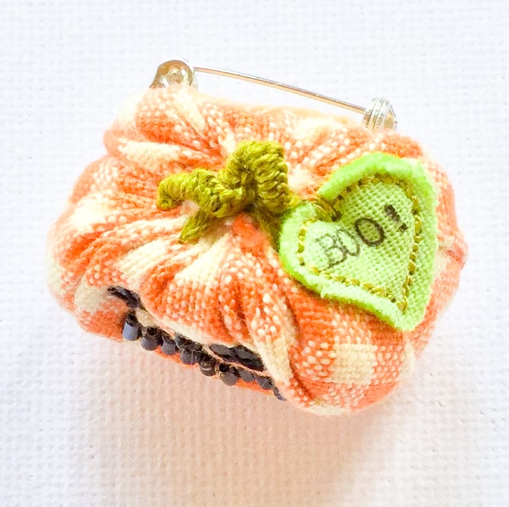 Pumpkin brooch.