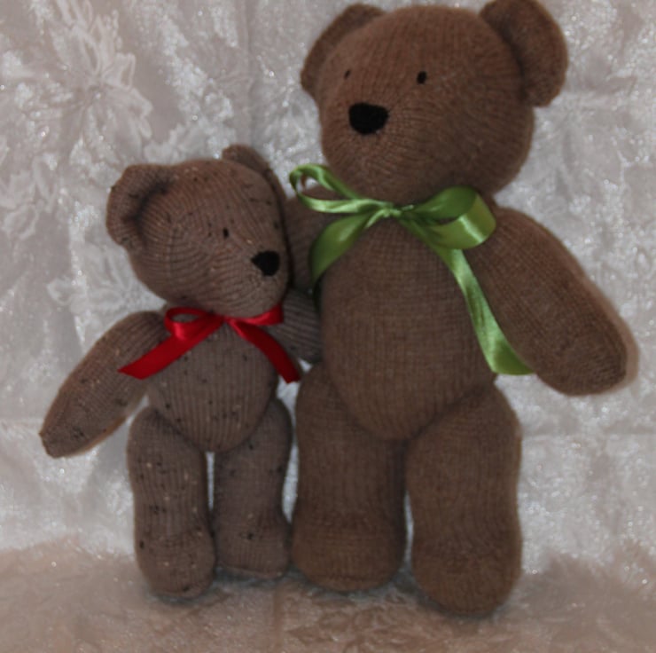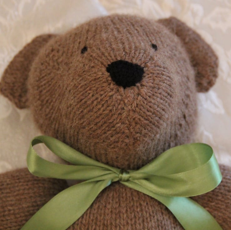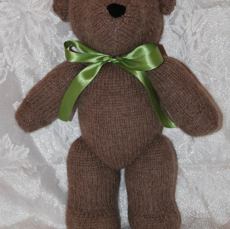 A gloriously luxurious, cuddly, soft brown bear, hand-knitted in 100% Alpaca chunky yarn.
