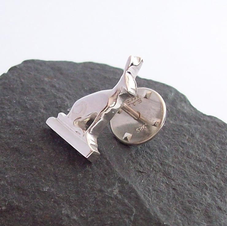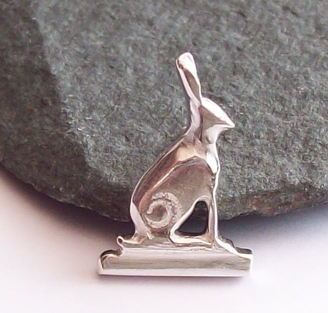 The Hare is flat at the back with a sterling silver pin soldered in place, and fastens with a sterling silver push on clasp.