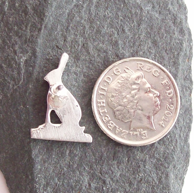 The Silver Sitting Hare Pin Brooch dimension is Height 1.8 cm x 1.2 cm wide x over 2.5 mm thick.