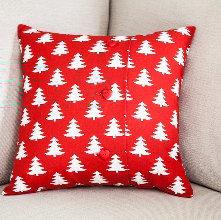 This scarlet red cushion with its white fir trees has a Scandinavian simplicity that will add style to any home, all year round!