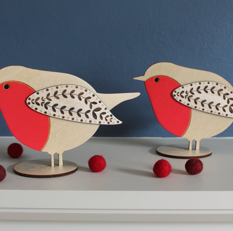 Standing Wooden Robin Christmas Decoration - Hand Painted