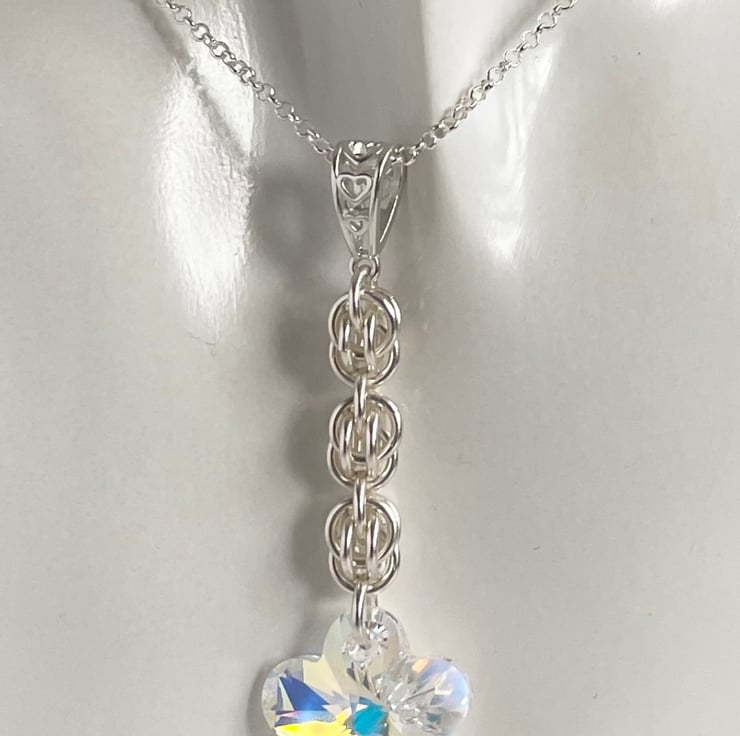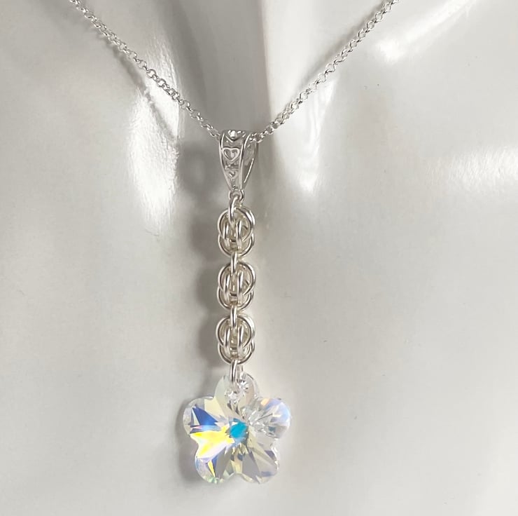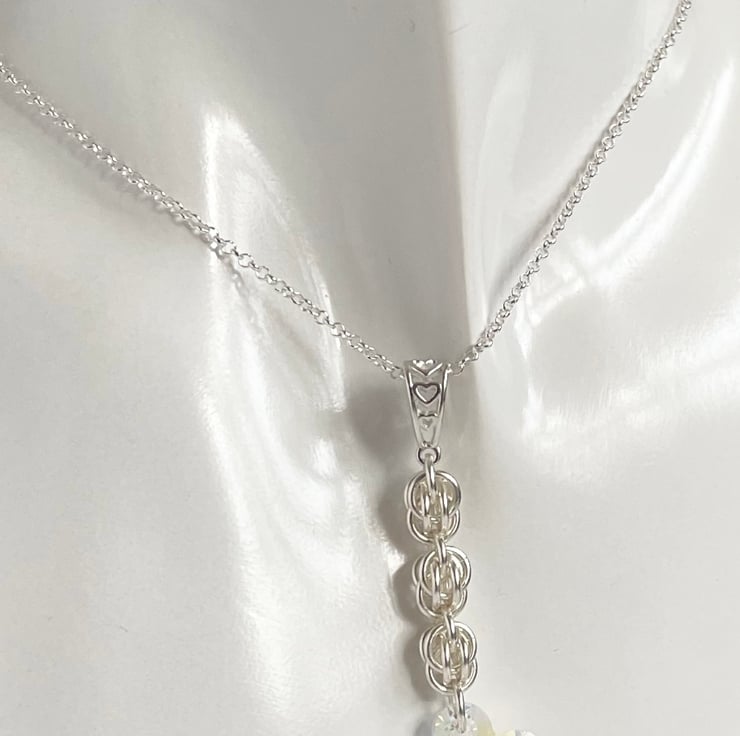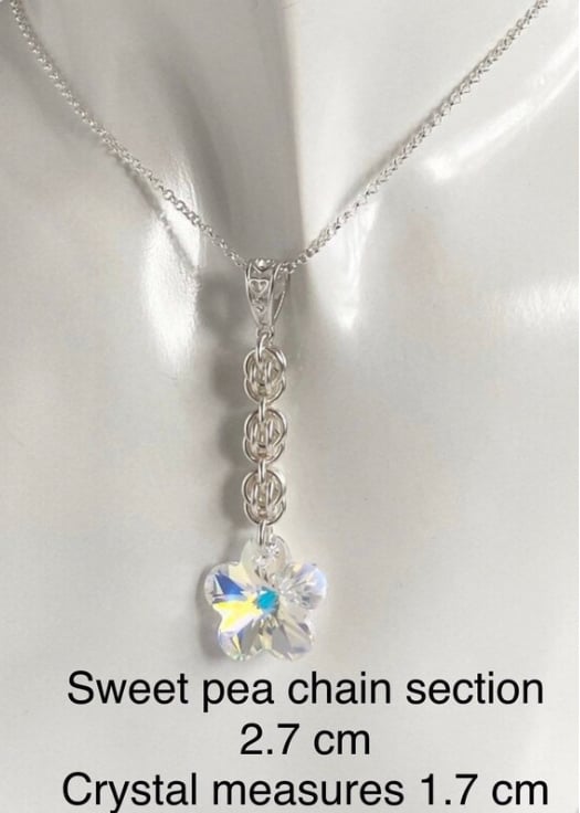 The Chainmaille chain section has been made using individual Sterling Silver rings which have been interlinked into the Sweet Pea Chainmaille pattern.