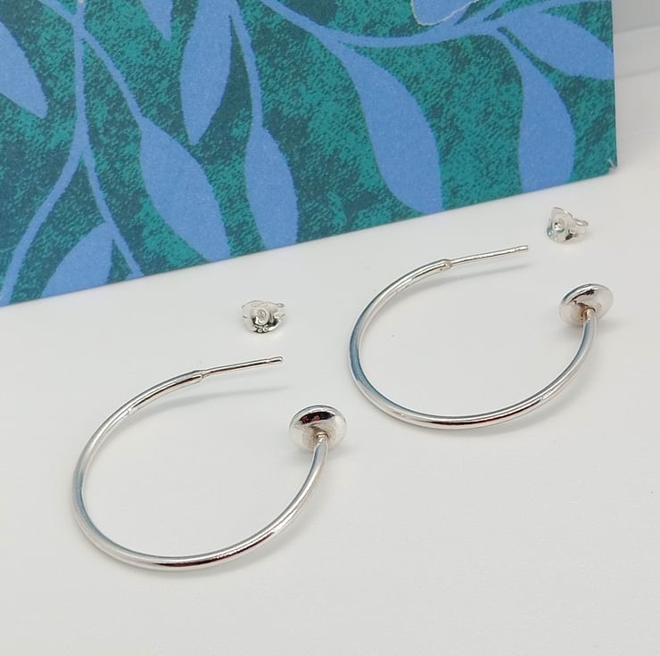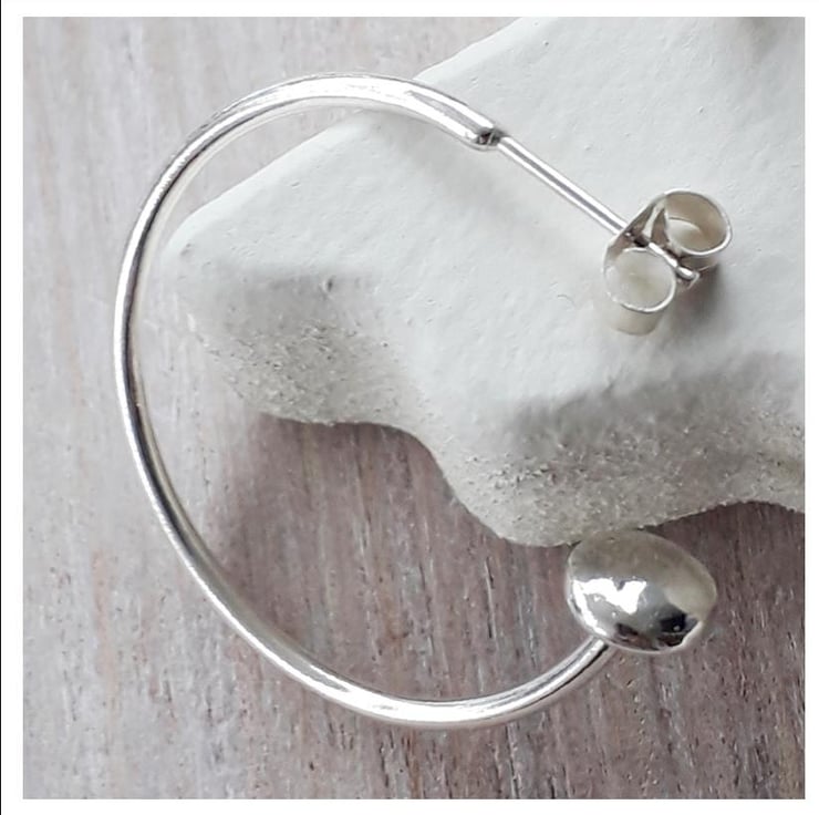 The hoops are 3 quarter circle with a stud fitting, the disc is soldered to the end of the silver wire.
