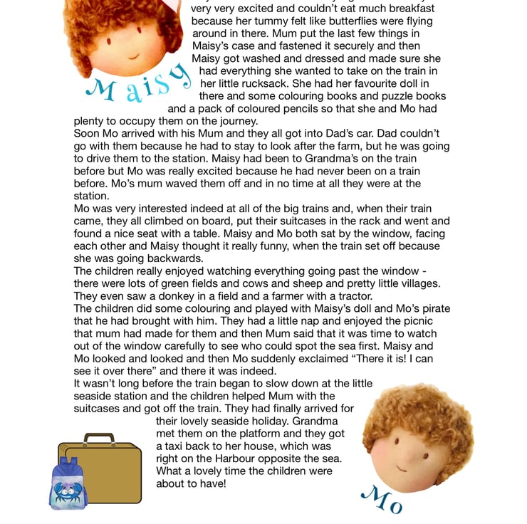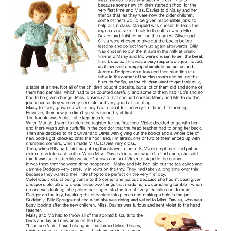 There are other children in Maisy’s class at school - Violet, Billy with his pet rabbit, Amber, Tilly, Rosie and her kittens, Amelia, Ruby, Marigold, Bobby with Max the dog, and the twins Oliver and Olivia, who have a puppy called Oscar. The dolls are all 26cm tall and baby Daisy is 16cm. Maisy and Mo love nothing more than having adventures with their friends. You can read about their adventures on my Facebook and Instagram pages - Maisy Muffin Rag Dolls and on my Mulberry Green Pinterest boards.
