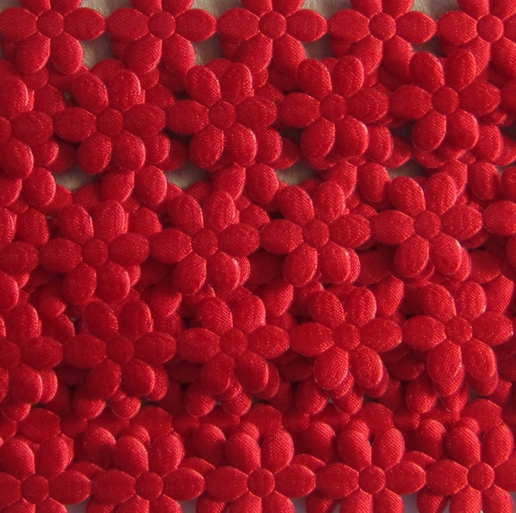 2 metres of red daisy trim. Each daisy measures 18 x 18 mm. Daisies can be used individually. There are 100 daisies in a 2 metre length.