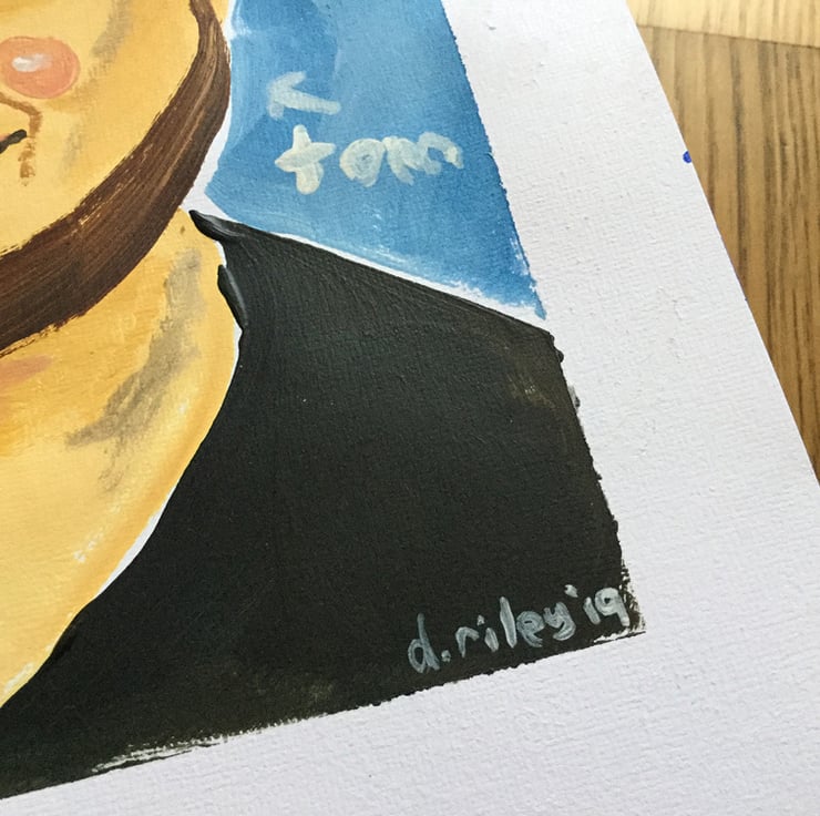 An acrylic painting on paper. It is roughly 23cm x 29cm, with the image being 18cm x 23cm. It is signed in paint (see photo) and will be sent unframed with a protective tissue sheet, in a cardboard-backed envelope.