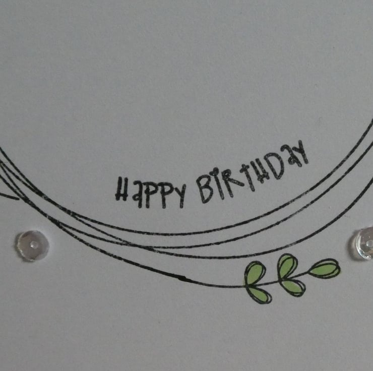 This cute Birthday card has been hand stamped and inked in delicate shades of brown and green.