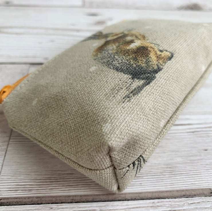This lovely little coin purse will fit into the smallest of handbags but is just large enough to hold cash and a bank card and would also hold a lipstick. The purse, with its delightful hare pattern, would make a lovely small gift for anyone who loves hares and nature.