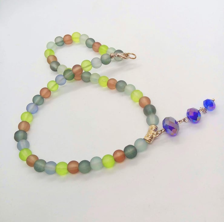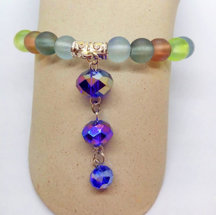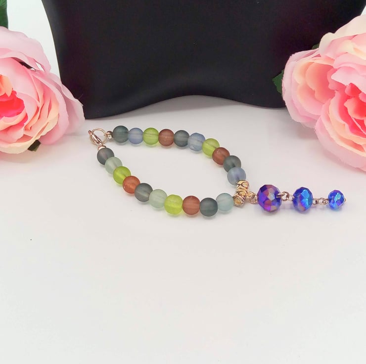 Jewellery Set With Multi Coloured Glass Beads and Blue Crystals, Christmas Gift, Necklace, Earrings, Bracelet, Accessories, Birthday Gift, Anniversary Gift