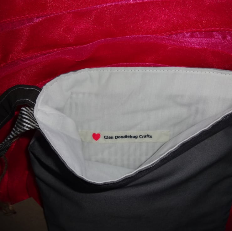 The lining has been made up of a contrasting fabric whilst the back panel has yet another colourway.