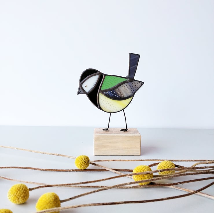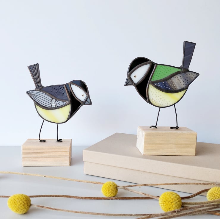 This little glass Great Tit is a super addition to a little shelf or quiet corner of a room. It's also particularly good paired with the glass Coal Tits.