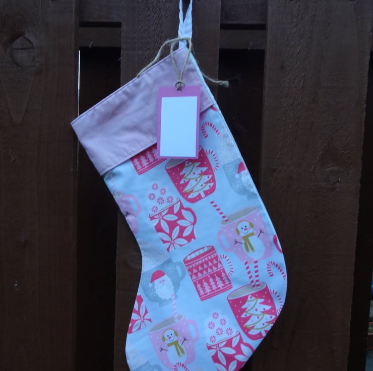 The stocking has a fabric tag attached for hanging and also a removable card tag which is ready for you to personalise with a name or I can write it on for you.