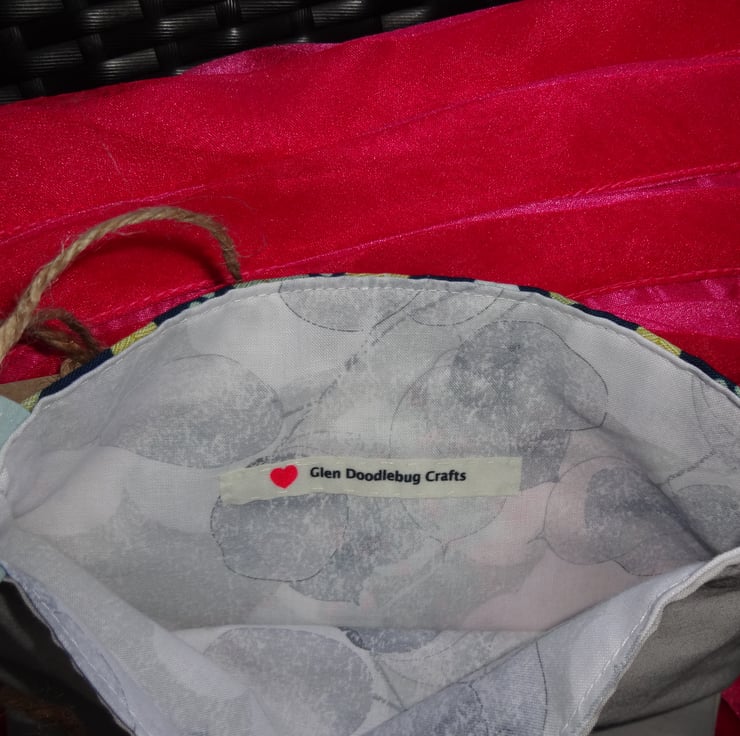 The lining has been done in a contrasting fabric and back panel has also been done in a different colourway.