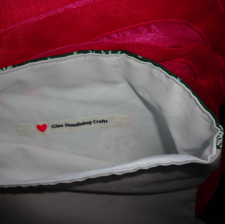 The lining is in a contrasting fabric and the back panel also has a different colourway.