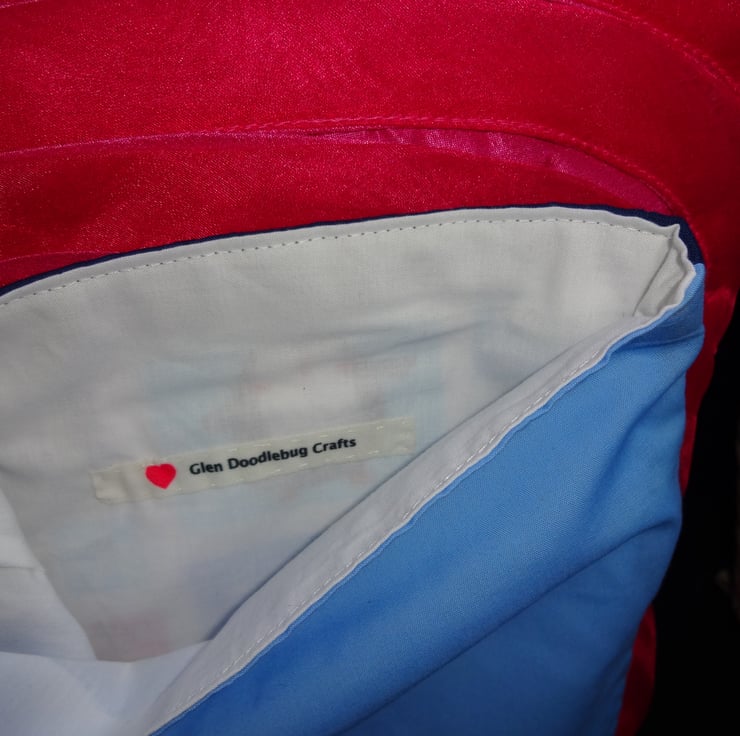 The lining has been done in a contrasting fabric with the back panel also being done in a different colourway.