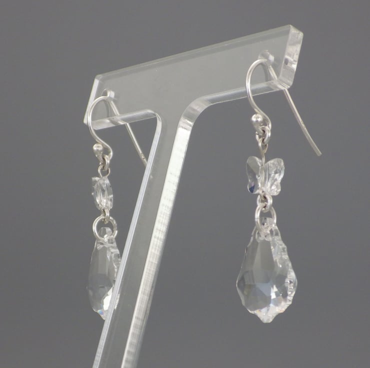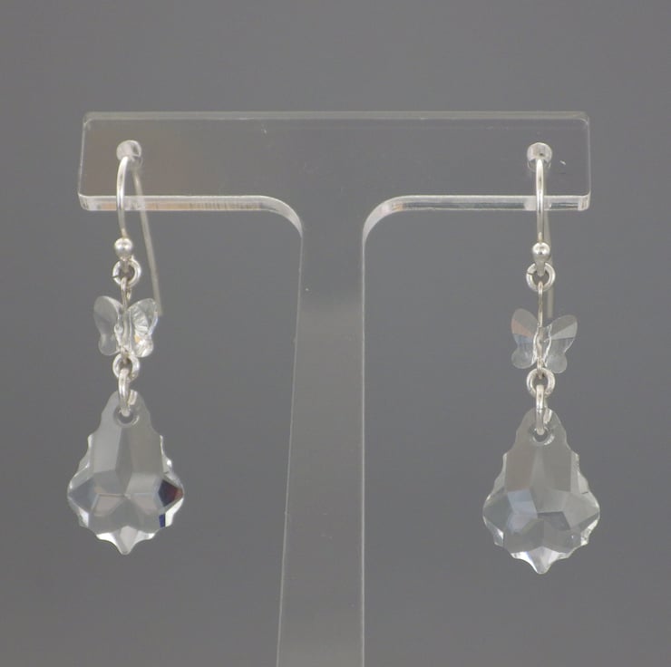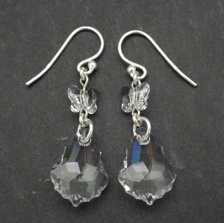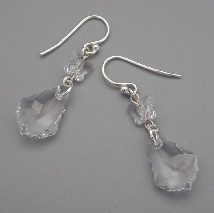 Crystal clear! These earrings are made by me using gorgeous clear crystal baroque Swarovski beads. Teamed with Swarovski crystal butterfly beads, they are finished using Sterling Silver findings to form fabulous earrings. These earrings would make wonderful bridal or prom jewellery.