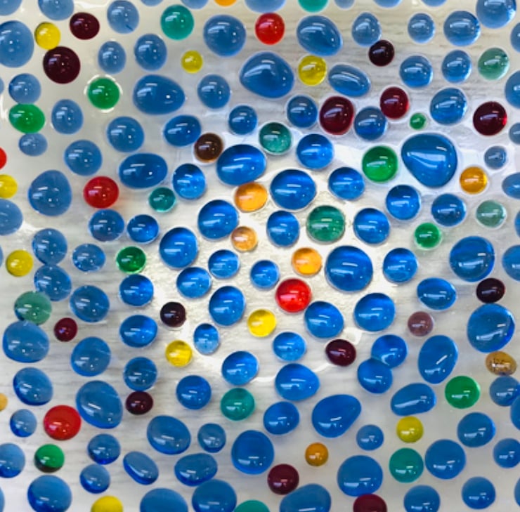 Multicoloured fused glass beaded dish .. , tactile , contemporary and bright this dish is approximately 10inch square . Beautifully and unique . Each of the beads are made by me first and then they are fuse in my kiln and then shaped to form this elegant contemporary dish. You cannot help but want to touch it.