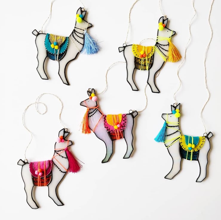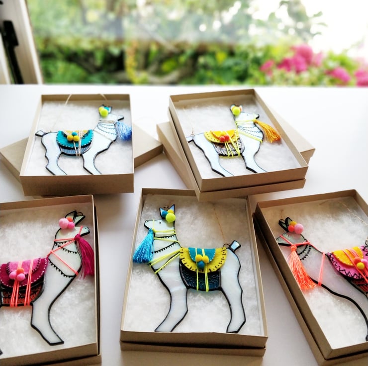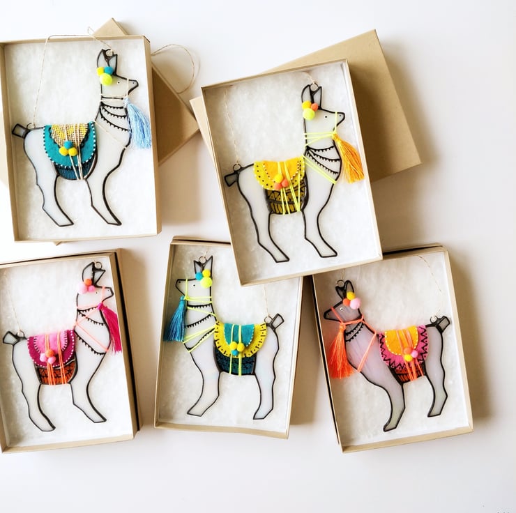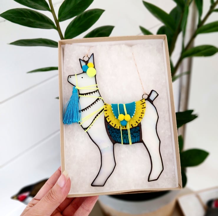 Each llama is unique with slightly different glass, patterning and textile embellishments. They come beautifully presented in an approximately A5 gift box with a hand signed care card.