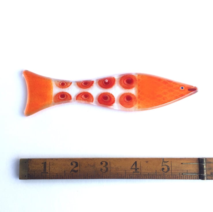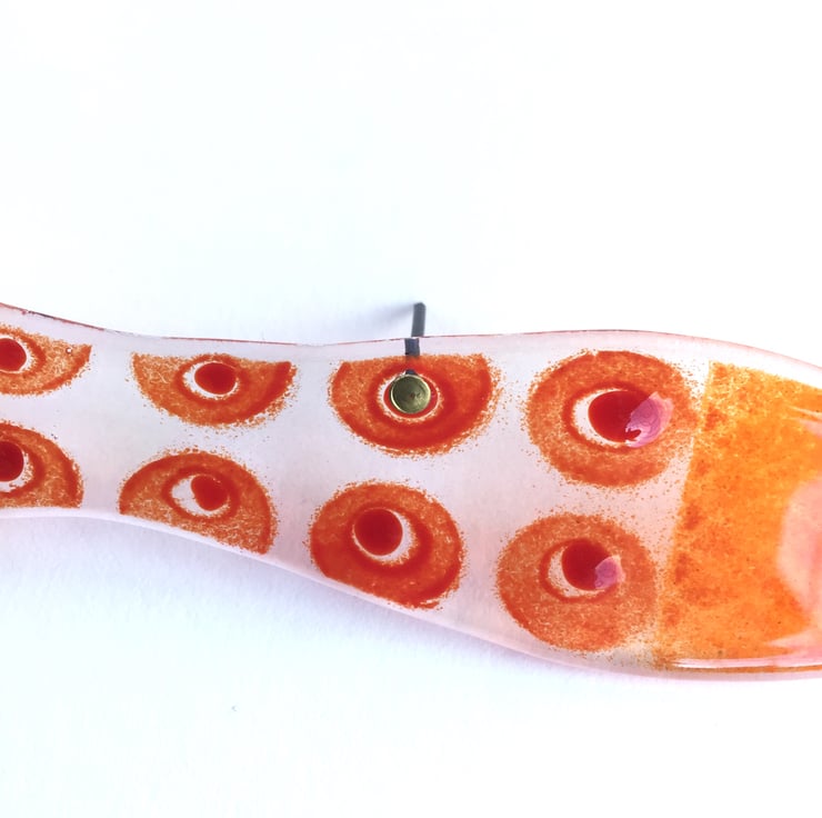 I have more orange and red fish listed in my shop. If you would like more than one you can choose from the listings for no extra postage (up to six) or ask me to make more in your colour choice. See last image for examples. I can do them in blues, greens, aqua, purple, reds and orange. Each fish is hand made by myself using my signature design, each fish will vary in shape and arrangement of my design.