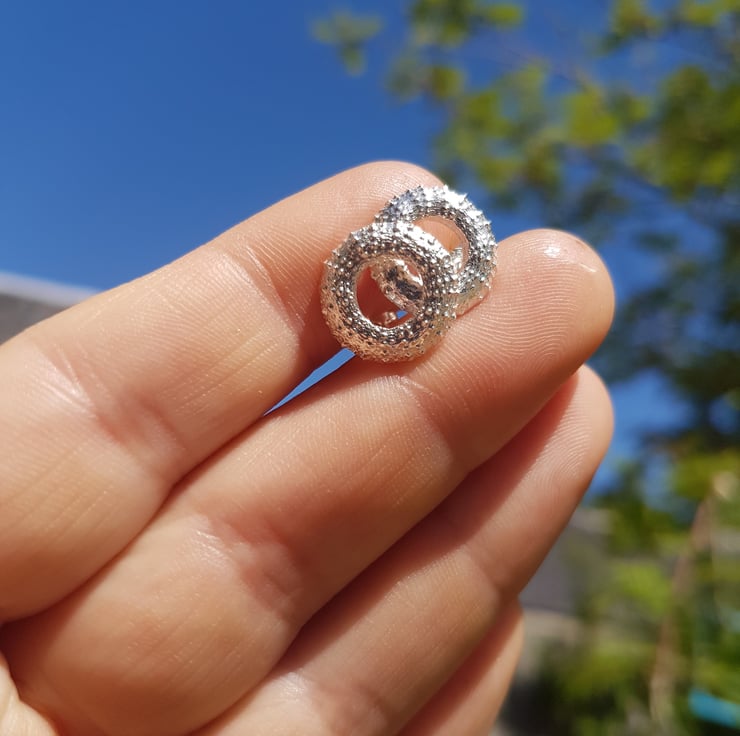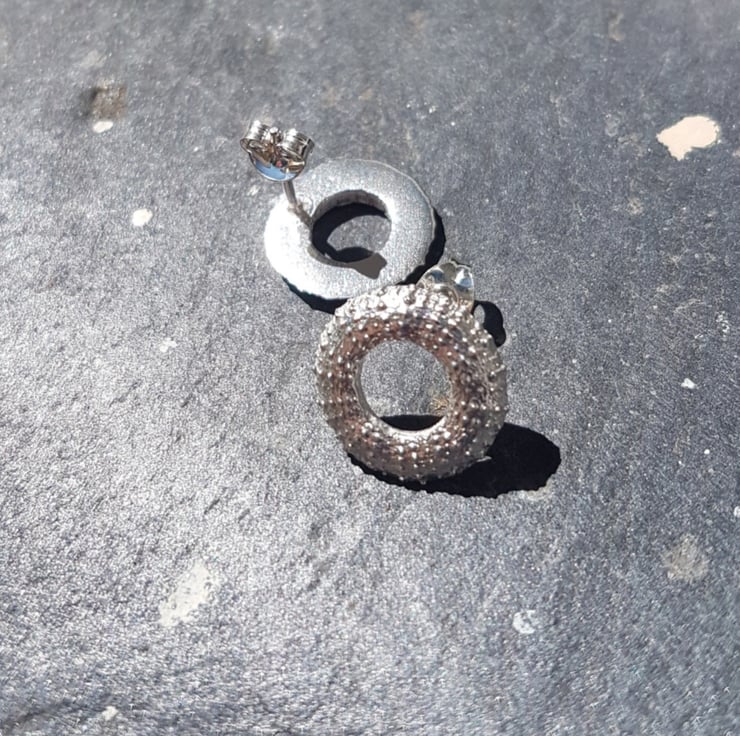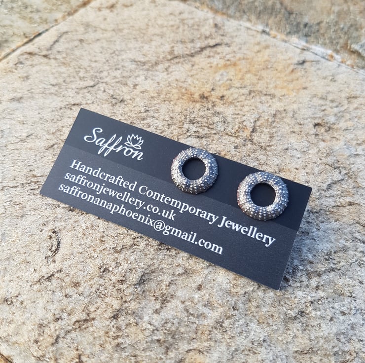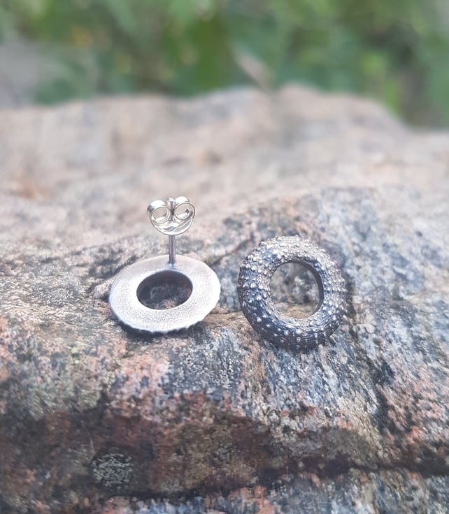 These pretty ear studs are made from tiny sea urchins cast in fine silver,
