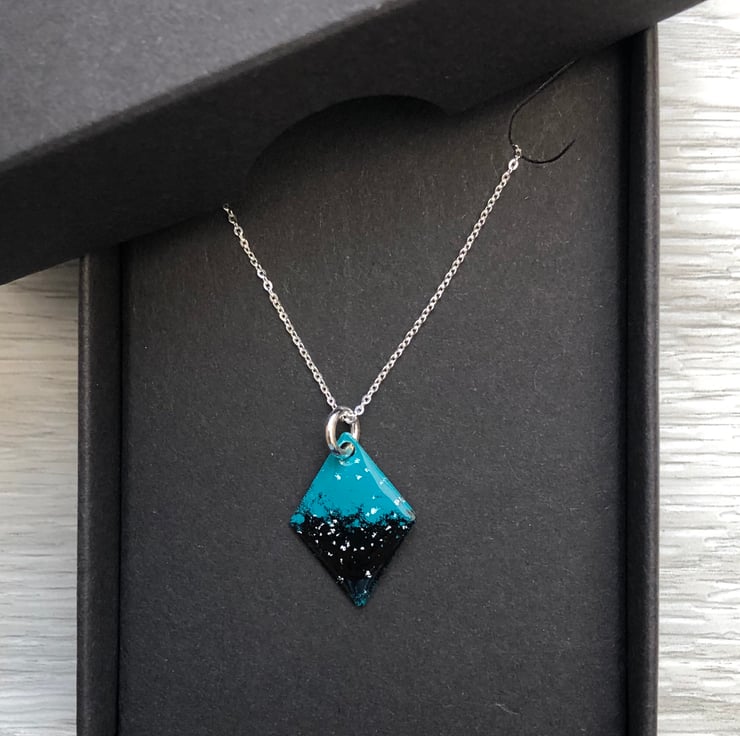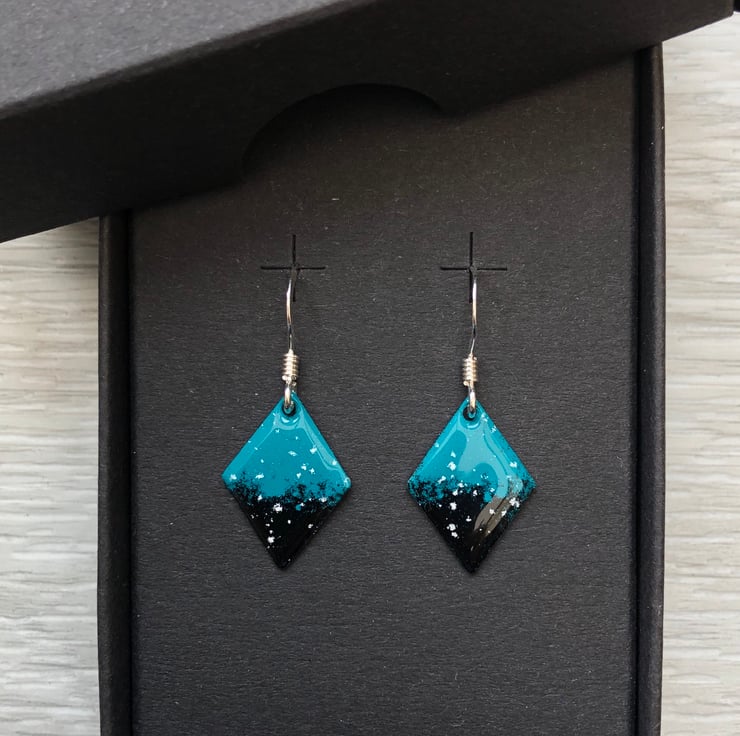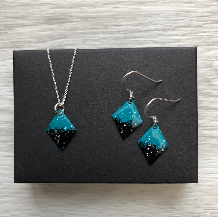 17x12 mm silver tone brass charms have been hand enamelled using cold enamels to make this striking and unique jewellery set.