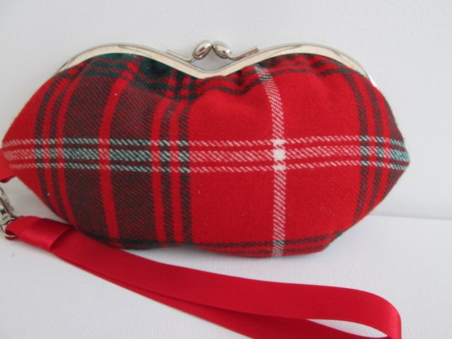 Charming little case for sunglasses or mobile phone in beautiful green and red wool tartan