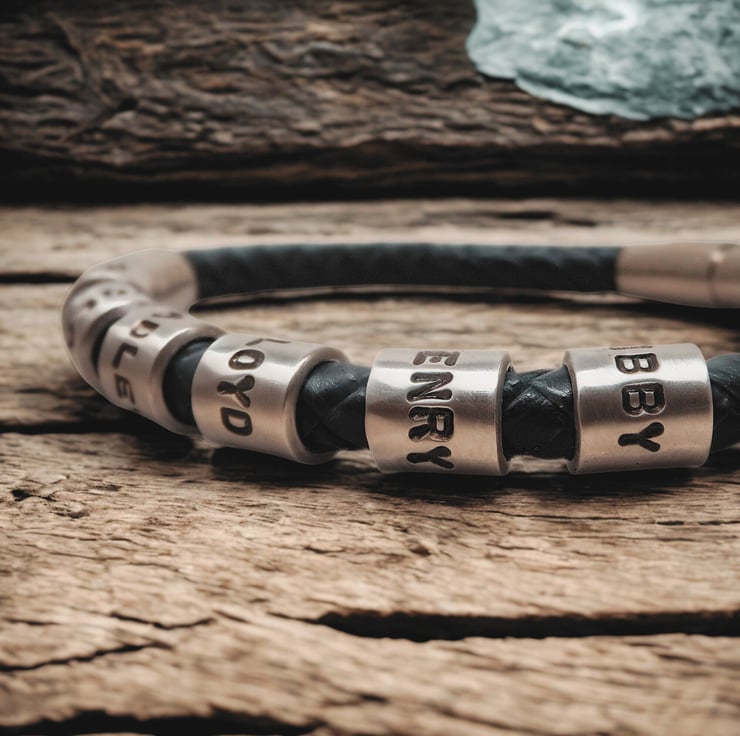 To order the Personalised Leather Bracelet with Seven Hand Stamped Rings, simply click the "Choose Options" button above and enter your personalisation details along with selecting your bracelet colour and length.