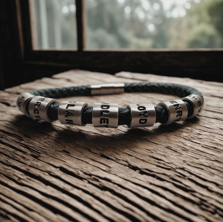 The Seven ring Men's Personalised bracelet is made with genuine braided leather that is 6 mm in diameter and has a locking stainless steel connector that ensures that it will not come undone.