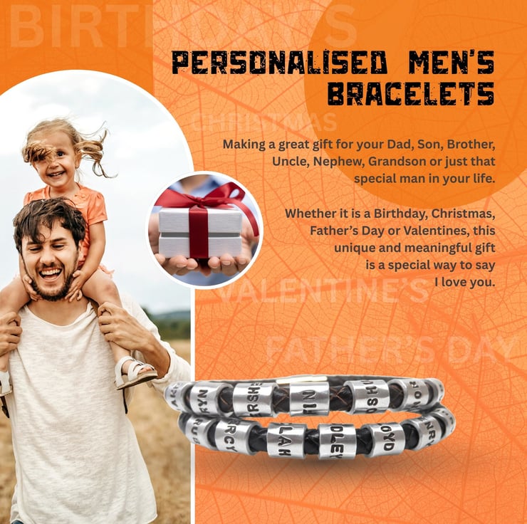 Your personalised leather bracelet will be sent to you inside one of our "Handmade Especially For You" gift boxes, making it instantly ready to be gifted at Christmas, Birthdays, Father's Day or Valentine's Day to your Dad, Boyfriend, Son, Brother, Uncle, Nephew, Grandson or just that special man in your life.