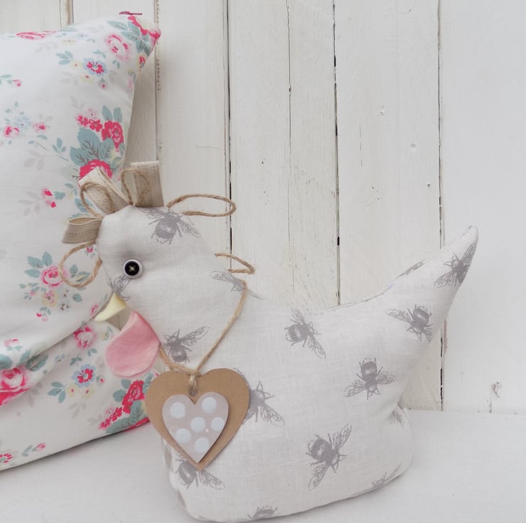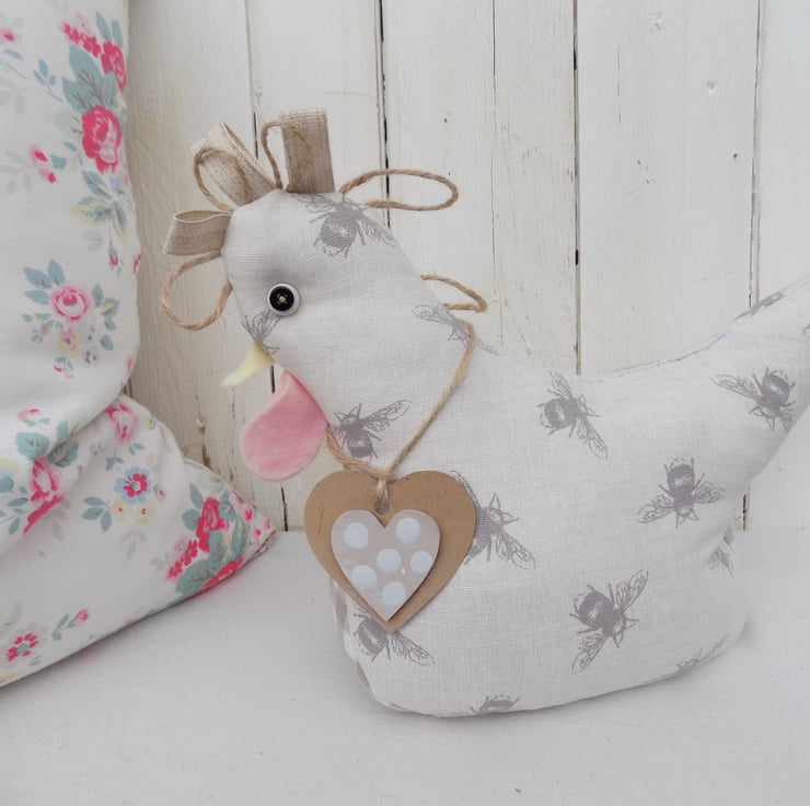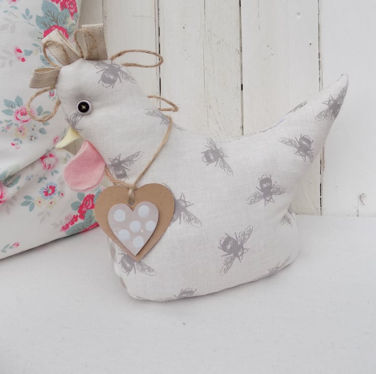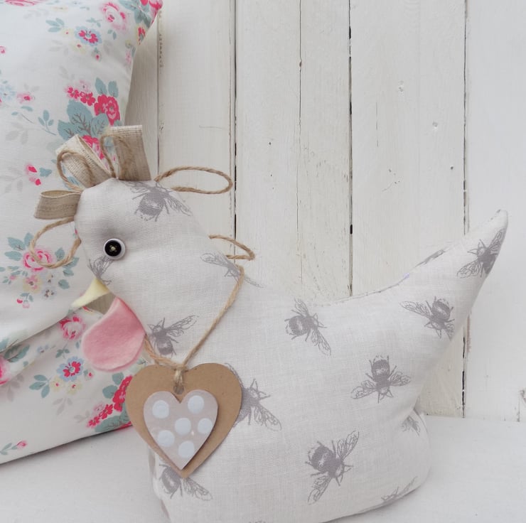 This chicken doorstop has been beautifully handmade from cream and taupe bumble bee fabric.