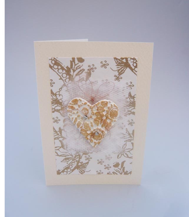 I make motifs from salt dough using a traditional recipe. Each motif is carefully varnished to protect it and enhance the colours. The card is A6 105mm x 148mm in size and made from ivory coloured card. I use lots of hand made papers, beads and copper wire as embellishments. Inside is left blank for you to add your own message and comes with a brown Kraft envelope. Your card will be sent 1st class in a clear plastic bag wrapped in bubble wrap in a reusable cardboard box. Each card is unique.