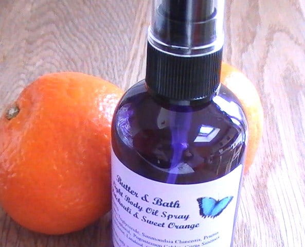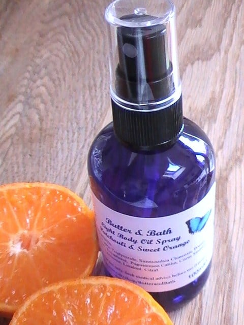 Our Patchouli and Orange Body Oil Spray is made with a blend of natural plant and nut oils, essential oils and vitamin E.