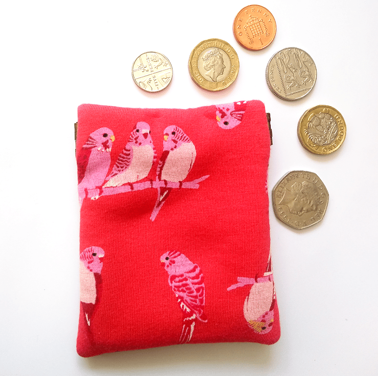This listing is for a handy pinch purse, fronted with budgies on red fabric, backed with plain natural fabric. The pouch is fully lined in a dusty pink fabric, matching the colour of some of the birds. A flex frame is installed so you just need to pinch the sides to open it and release to close. Internal padding gives some protection to the contents, which is particularly useful if you wish to store earbuds or perhaps jewellery.