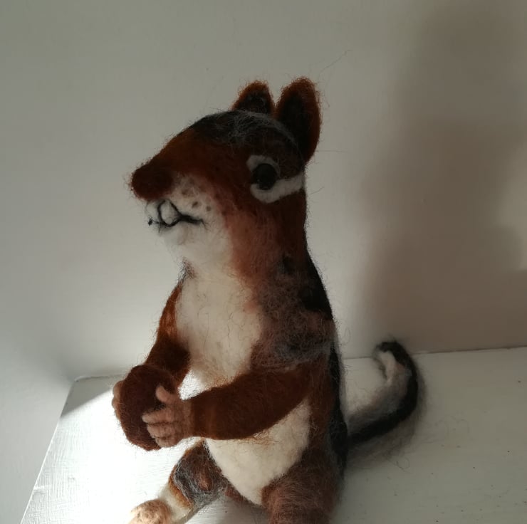 All wool needle felted onto a wire armature so can adopt a variety of different poses handmade OOAK approx 7inch /17cms high.