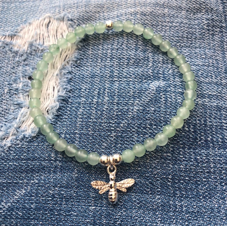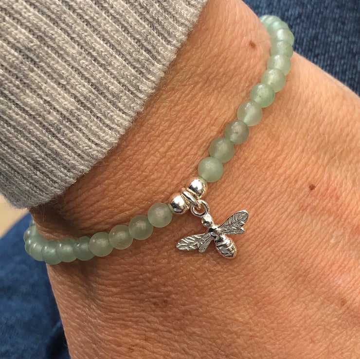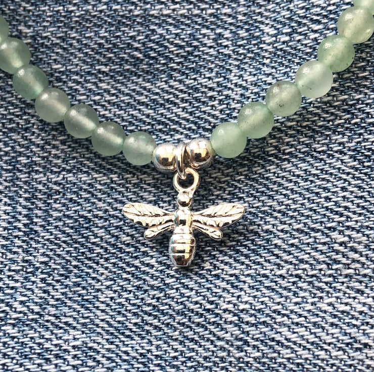 Made using 4mm Semi precious aventurine, sterling silver beads and a sterling silver honey bee charm.