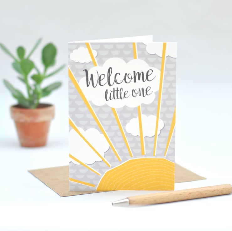 To the new little ray of sunshine in your life! Send this cheerful greeting card to welcome the new little baby to this world. The neutral sunshine design makes it equally suitable for boys and girls.