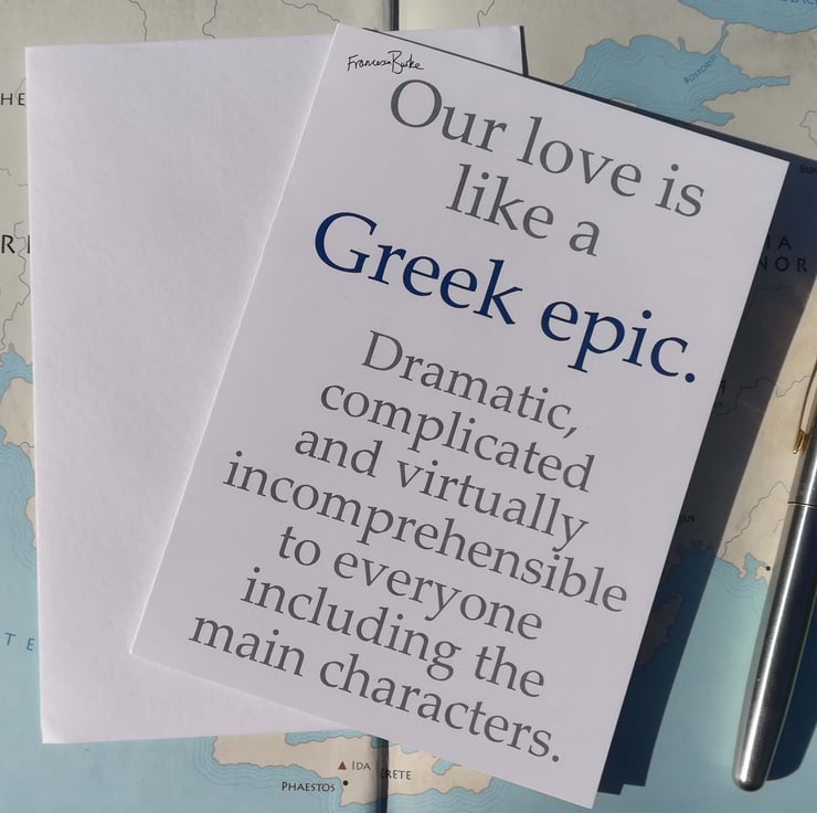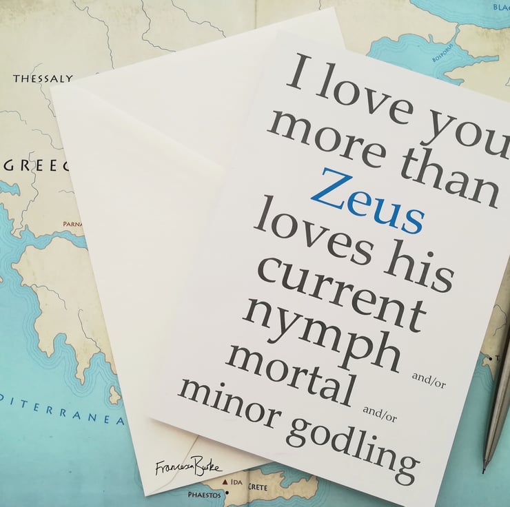 If you like one Greek mythology joke, there's a good chance you like three. So I've bundled my Greek mythology love cards together (which gives you a discount!). Now you can make them laugh (and really show how much you love them) on an anniversary, a birthday AND Valentine's! Consider this bundle the gift that keeps on giving...