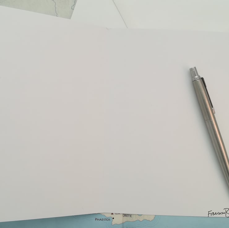 Your hese matte 5x7" cards are professionally printed on 350gsm, silk white card. The paper is FSC certified. Each card comes with a white 'hammer effect' envelope in a clear cellophane sleeve. The inside of each card has been left blank.
