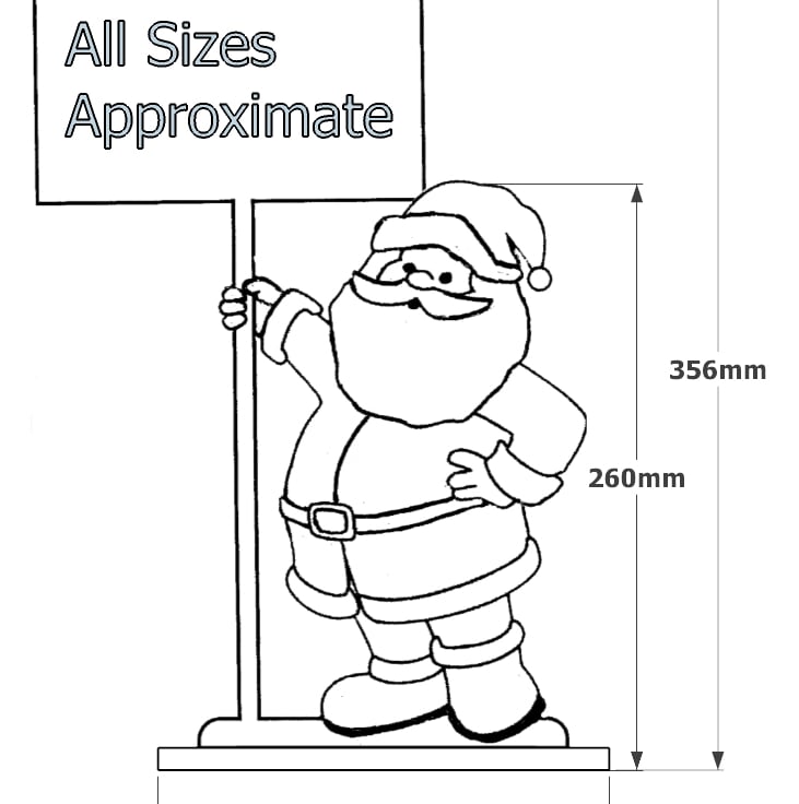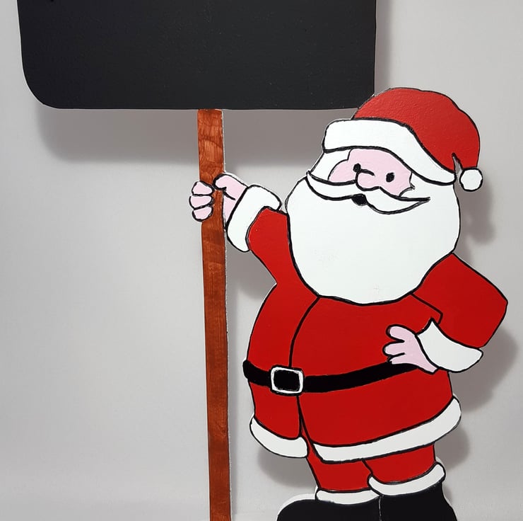 Freestanding cutout Santa holding a chalkboard placard. Ideal for counting down to Christmas.