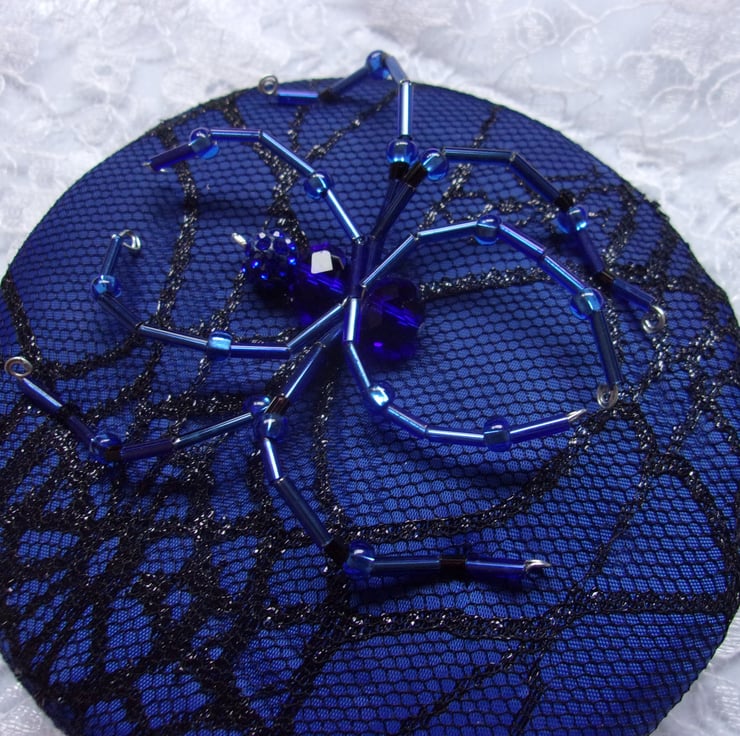 Royal Cobalt Blue & Black Crystal Spider Cocktail Hat Fascinator Mini Headpiece