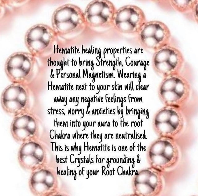 Hematite healing properties are thought to bring Strength, Courage & Personal Magnetism. Wearing a Hematite next to your skin will clear away any negative feelings from stress, worry & anxieties by bringing them into your aura to the root Chakra where they are neutralised. This is why Hematite is one of the best Crystals for grounding & healing of your Root Chakra.