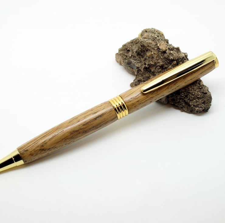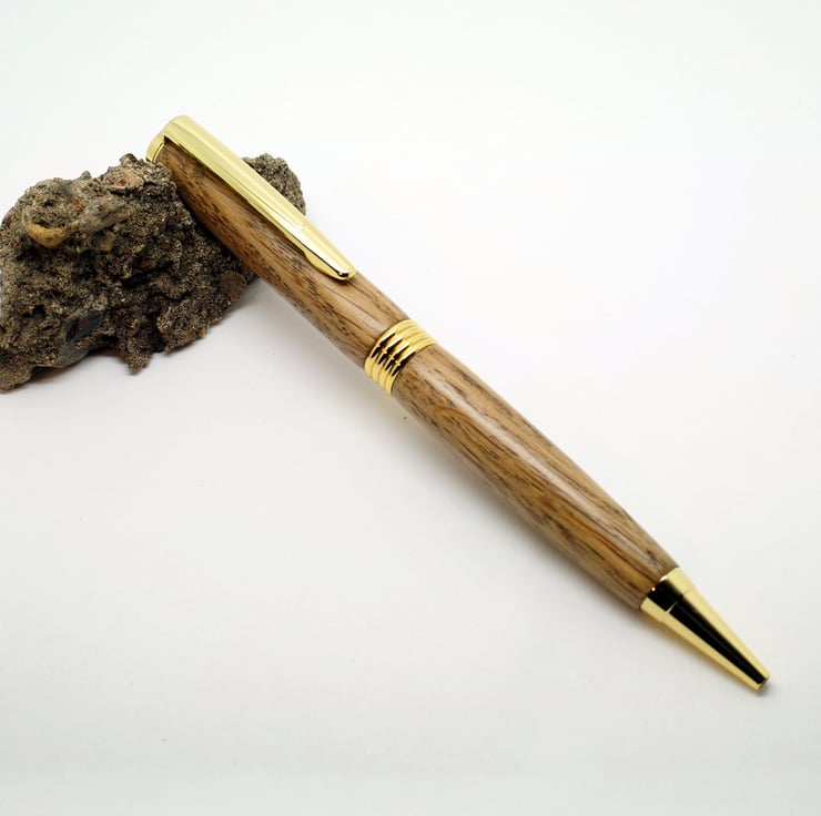 This pen was handturned by me in my workshop in suffolk, the metal parts are gold finish, Included in the price is a black card presentation box & Protective velvet sleeve