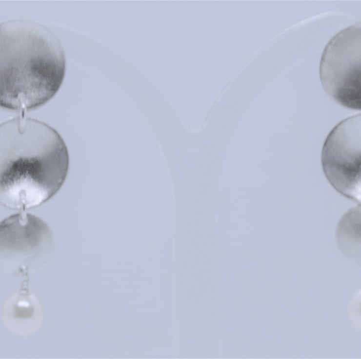 The sterling silver discs used for these earring have been given a frosted effect then joined together with small jumps rings I have added Swarovski pearl to make the snowdrop and contrast with the frosted discs. These earring are 40 mm long, 12 mm at the widest part. A lovely additional or the Christmas season. They are available to buy now and will be delivered gift wrapped.