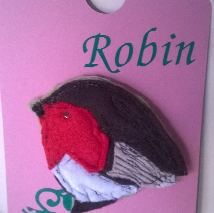 Christmas Robin Fleece Brooch handmade with pin fastener on reverse.