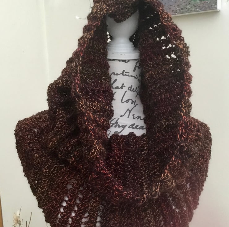 Something for the colder weather. A wonderful alternative to a traditional scarf, simply loop around the neck, or over the heard and wear it in a variety of ways.,